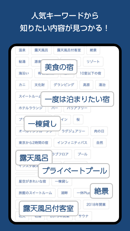 ・ U kunt zoeken naar functies met populaire trefwoorden zoals 'kamers met openluchtbaden' en 'aanbevolen accommodaties voor koppels'