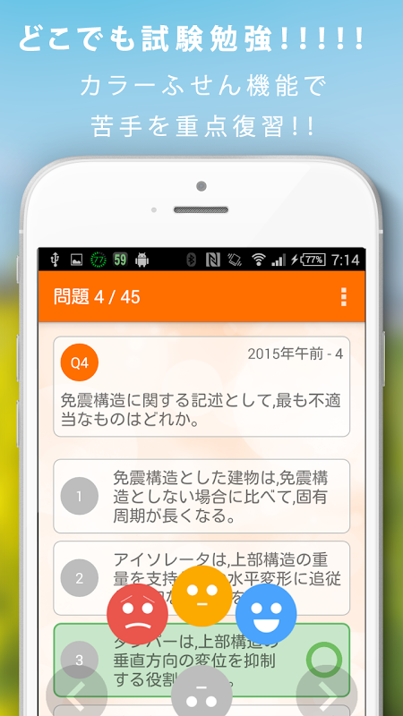 一級建築施工管理の暗記カード+過去問。マイ暗記カードの作成、開催別、分野別、苦手な問題などから独自の問題セットを作成でき重要な項目を徹底的に復習できます。