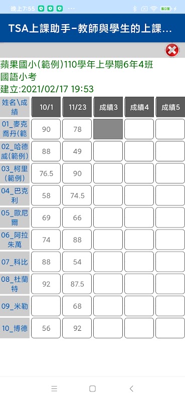 成績管理:可輸入小考、期中、期未、測驗等成績。