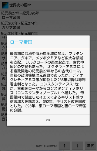 世界史に実在した国々を、一覧表示するアプリです。