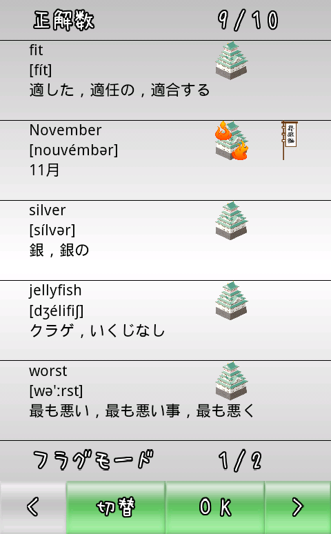 U kunt de vlag geven ook antwoord op niet alleen ③ resultatenscherm. De vlag wordt bevestigd uitgeeft automatisch een onjuist antwoord, maar je kunt ook uitschakelen op de plek.