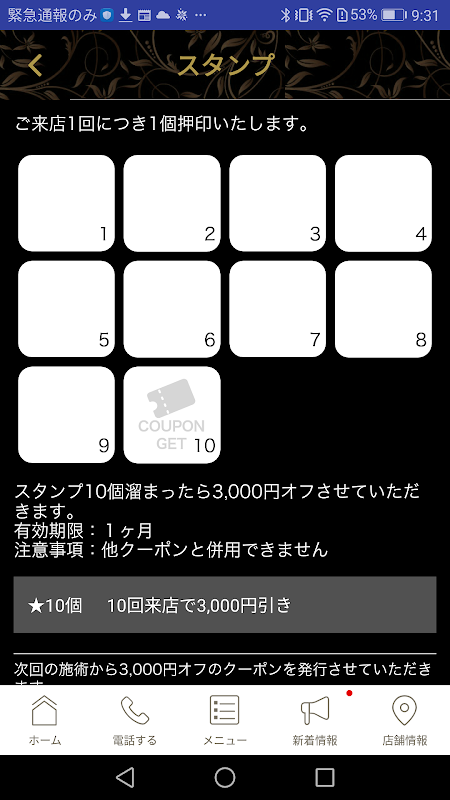 ご来店スタンプをためるとお得なクーポンが発行されます(ご利用条件がある場合がございます)
