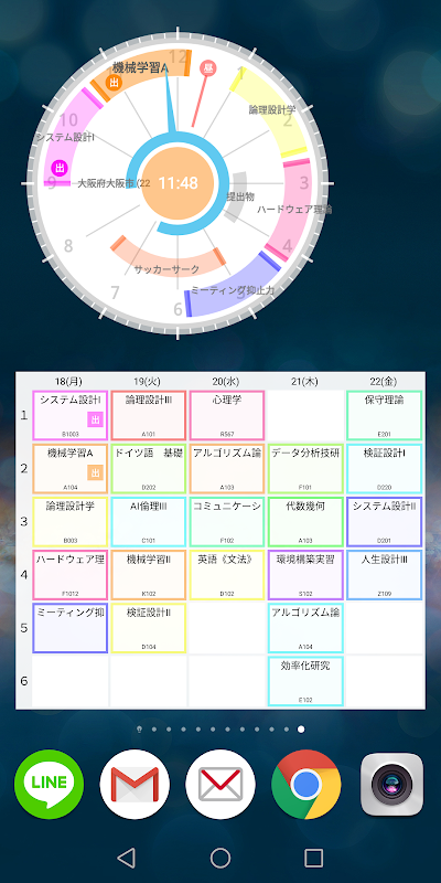 学生の為のおしゃれな時計型の時間割アプリです。 オンライン版ですので、ほかの学生と交流を深め、知り合いや友達を増やして楽しい学生ライフを!(オフライン版も有)