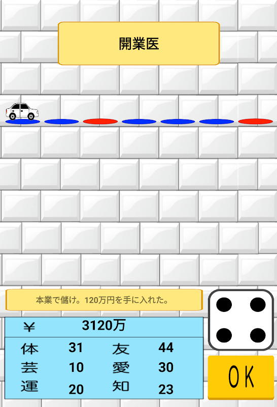Het is een sugoroku-spel waarbij je de dobbelstenen gooit en het bord vooruitgaat. Winnen of verliezen wordt bepaald door de uiteindelijke stijging of daling van het geld. Geluk is misschien wel de sleutel tot de overwinning! ?? Er kunnen maximaal 4 spelers tegen elkaar spelen.