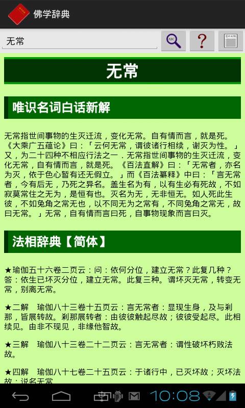 目前唯一可以脱机使用的佛学辞典。 收入了《三藏法数》、《佛学常见词汇》、《法相辞典》、《唯识名词白话新解》四部辞典,约三万个佛学词汇。