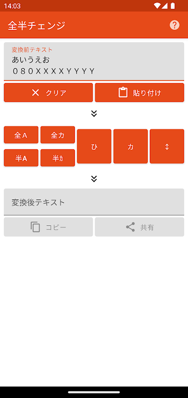 全半チェンジ - 全角半角ひらがなカタカナ変換アプリ APK -informatie