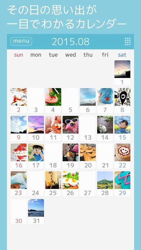 1か月分をまとめて表示でよみがえる思い出がいっぱい!