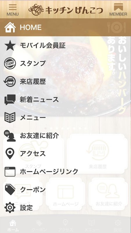 このアプリでは、キッチンげんこつの色々な情報やアプリユーザー限定のお得なサービスが手に入ります!