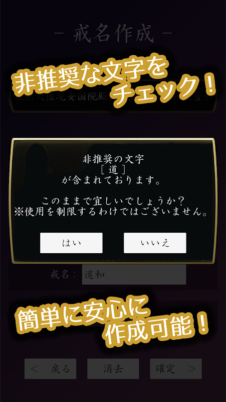 戒名と呼ばれるものを作り、位牌に載せて世界中に発信できるアプリです。