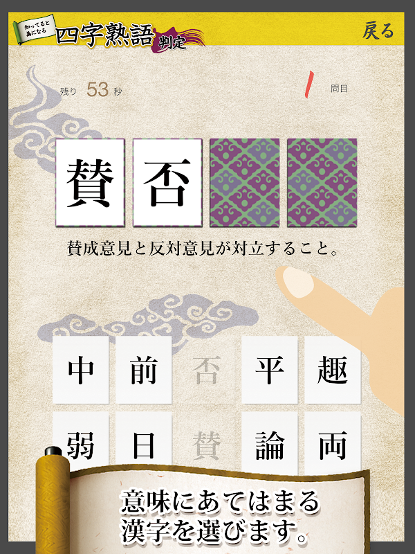 Lees de betekenis, kun je de Chinese karakters die toepassen. Makkelijk te begrijpen is ○ × oordeel.