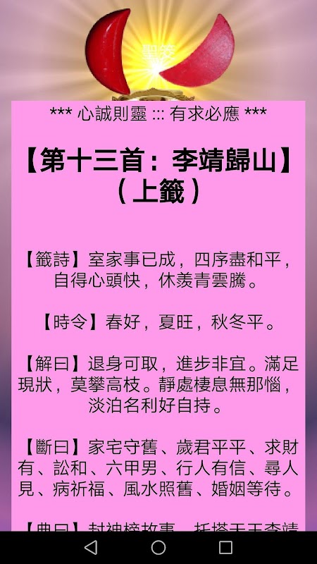 如果你心神恍惚,遇到事情時六神無主,無法好好判斷和下決定,不妨用手機求籤,問問前程,只要心誠則靈,而且有求必應,趨吉避凶。