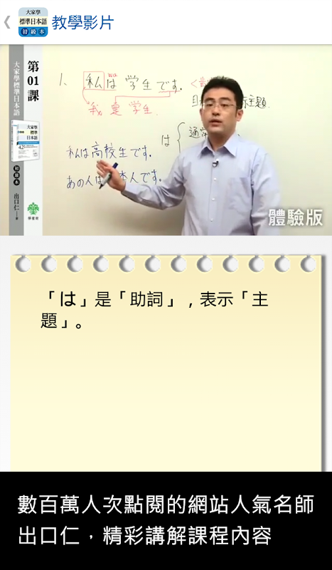 ※ In dit product is er ook een lesvideo van standaard Japans [primair boek] voor iedereen die standaard Japans [primair boek] leert door de heer Koujin, die rechtstreeks in deze app kan worden gekocht, en de prijs is NT $ 270. Als er een uitgebreide geheugenkaart in het apparaat is geïnstalleerd, kan deze worden ingesteld om de lesvideo naar het secundaire opslaggeheugen (SD-kaart) te downloaden.