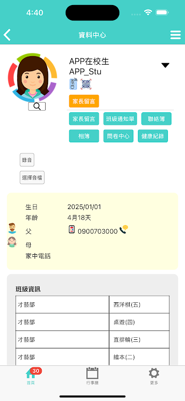 5. Fotoalbum: Een verzameling foto's die door ouders en leerkrachten zijn opgestuurd, die gecategoriseerd en in batches gedownload kunnen worden naar de mobiele telefoon.