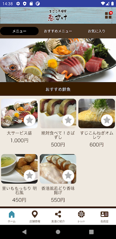 Via de app kun je in realtime nieuwe informatie en deals ontvangen bij Seafood Izakaya Tenmagokoro Food Riesuke.