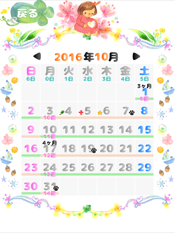 出産予定日には、赤ちゃんのアイコンを表示しています。