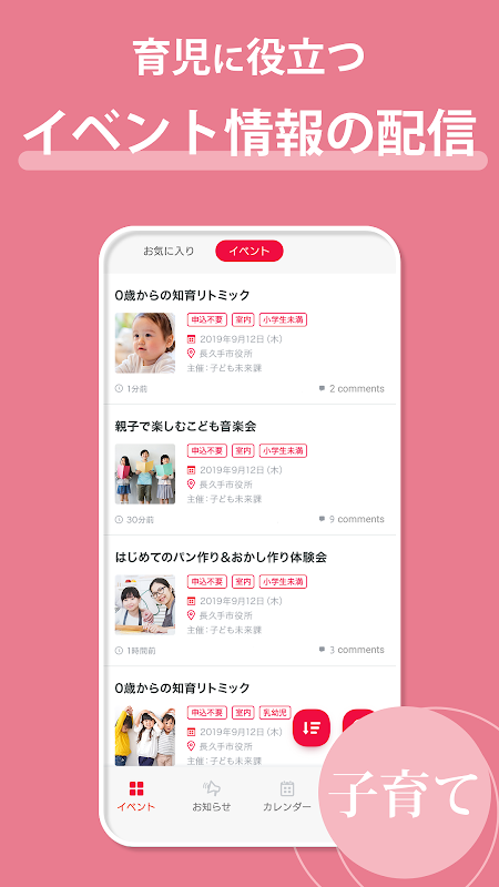 子育て支援アプリは、育児に役立つ"イベント情報"や、