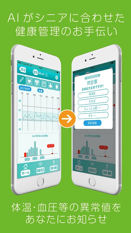 Het is een applicatie die dagelijkse vitale informatie (lichaamstemperatuur, bloeddruk, pols, gewicht, lichaamsvet, bloedsuikerspiegel) beheert en abnormale vitale waarden detecteert en u hiervan op de hoogte stelt.
