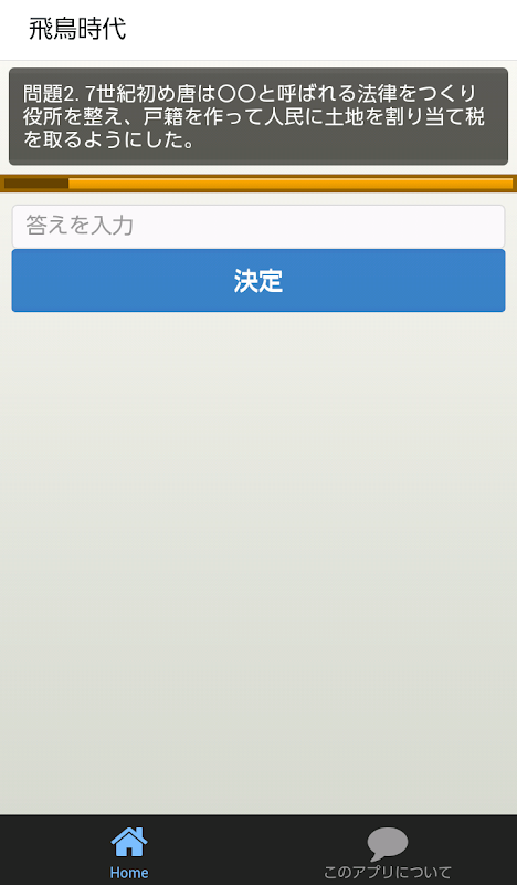 時代別にクイズ形式になっている歴史学習アプリです。
