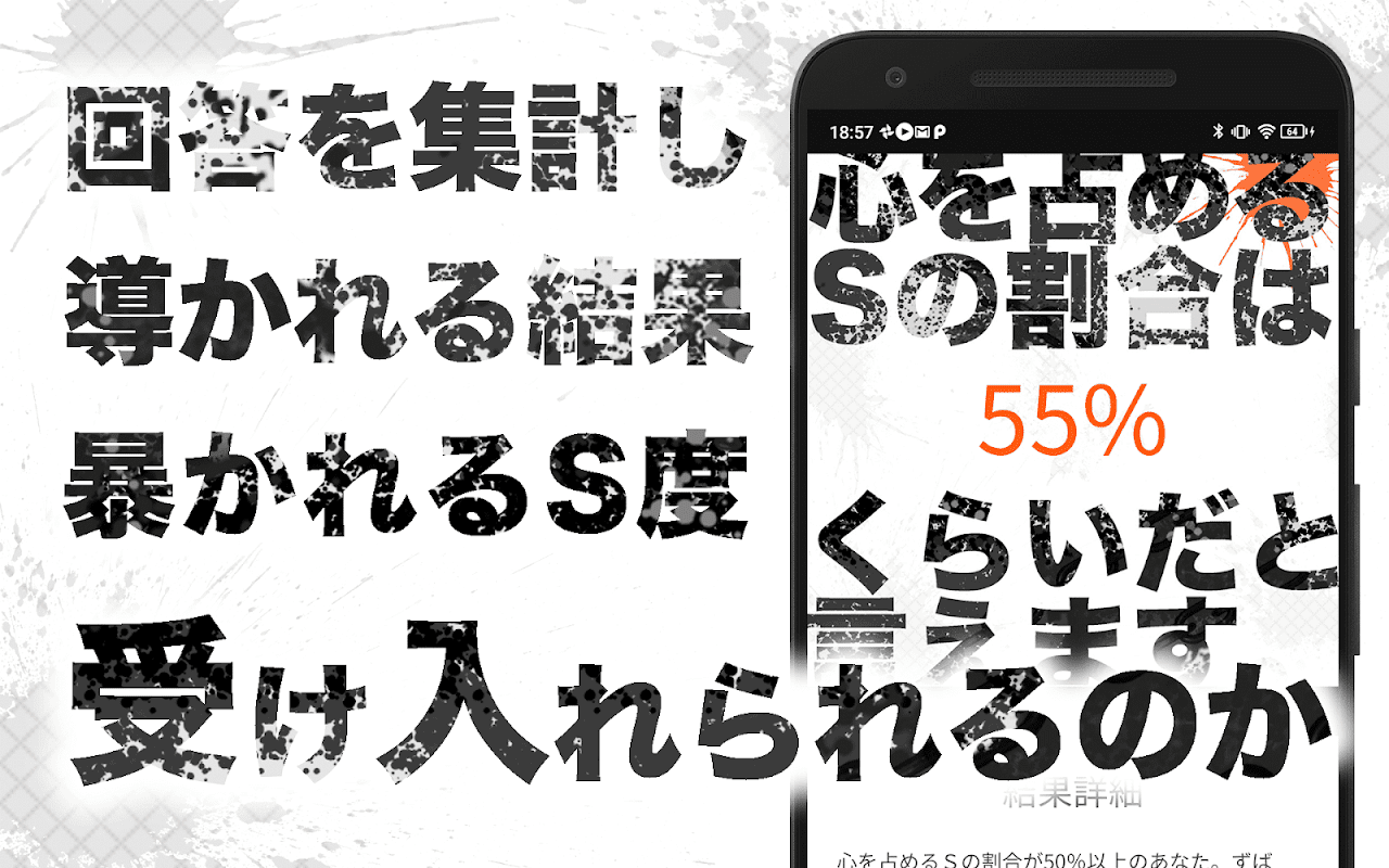 Het is een diagnostische game-app die je S-graad meet door eenvoudigweg vragen en psychologische tests te beantwoorden (^^ ♪