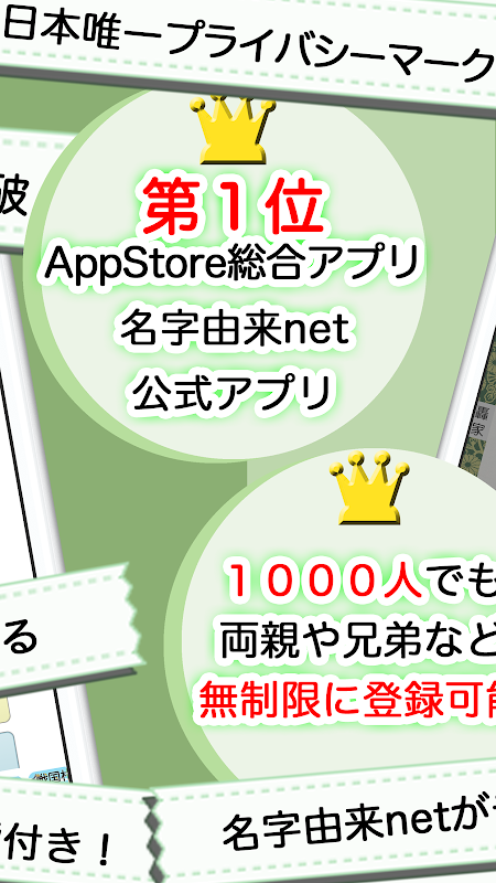 De grootste en nr. 1 gratis stamboom-app van Japan met meer dan 1,5 miljoen geregistreerde gebruikers. Nr. 1 in het algemeen in de App Store, beheerd door het enige bedrijf in de branche dat de van het privacymerk afkomstige officiële netto-app heeft aangeschaft