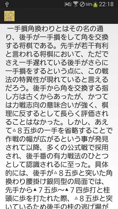 将棋の戦法のひとつ、一手損角換わりの定跡をまとめたアプリです。