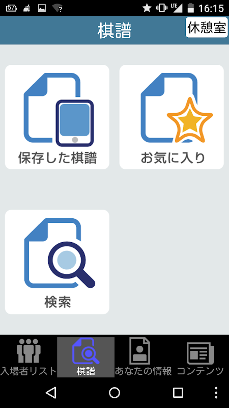 ・観戦、対局、検索し閲覧した棋譜を自動的に端末に保存し、いつでも再現。「お気に入り」に最大100件登録可能。