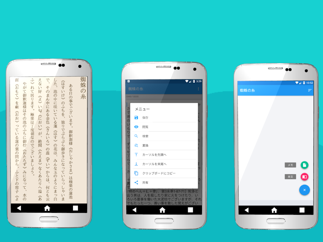 自分の書いた小説や作文を電子書籍のように縦書きで読むことができます。