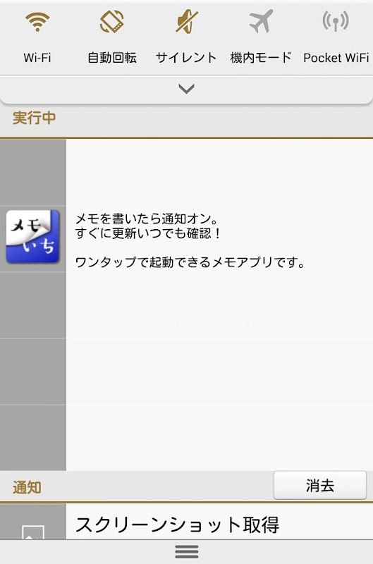 通知オンにすると、メモいちアプリが通知欄に常に表示されるようになります。
