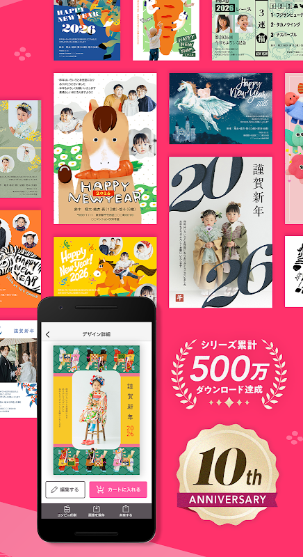 Maak ontwerpen voor nieuwjaarskaarten, nieuwjaarskaarten en rouwkaarten op je smartphone! Adressen voor nieuwjaarskaarten printen is eenvoudig! Nieuwjaarskaarten-app 2026 waarmee u thuis nieuwjaarskaarten kunt maken, ansichtkaarten kunt ontwerpen en afdrukken