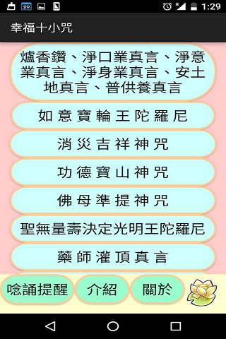 十小咒咒語凝聚了十方三世眾佛菩薩的很多功德能量,念誦十小咒可以修到很大的功德利益。本程式提供真人唸誦MP3和唸誦提醒以方便各位師兄師姐使用。