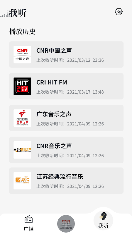 自动更新近期播放的电台,让用户快速查看历史播放过的电台。