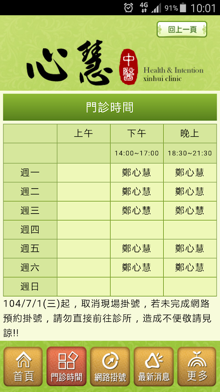 心慧中醫於民國102年成立,位於沙鹿區鹿寮里的鹿鳴公園旁,是一個協助病患緩解病痛、同時調養身體的一個舒適溫馨看診環境。