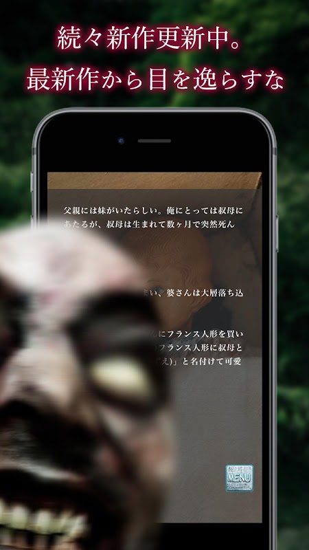 2週間に1度、こわい新作が6話ずつ追加されます。