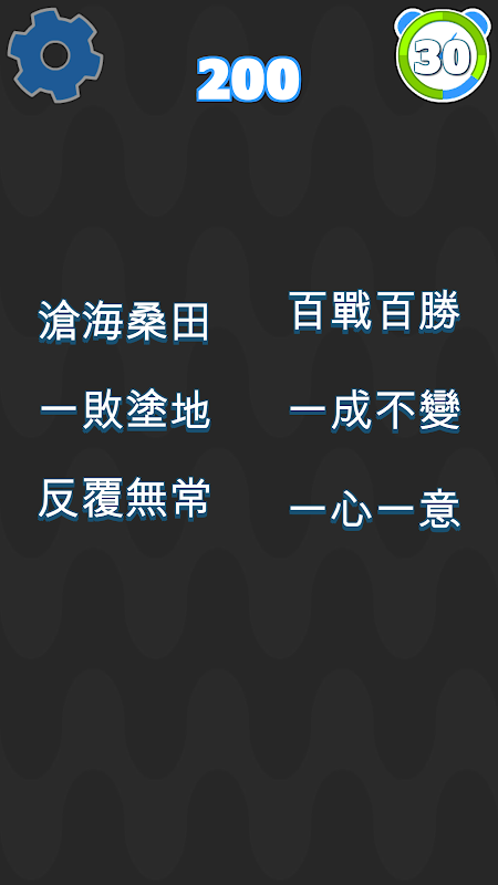 Dit is een gloednieuw idioomspel dat traditioneel Chinees gebruikt en kan worden gespeeld door alle spelers die Chinese karakters beheersen. De spelmethode is heel eenvoudig: vul gewoon het juiste antwoord in op de lege vakjes volgens de aanwijzingen in het woordenboek en je kunt door het level heen breken. Er is geen tijdslimiet voor het niveau, als je het nodig hebt, kun je langzaam in het woordenboek zoeken, of raden en willekeurig de lege plekken invullen.