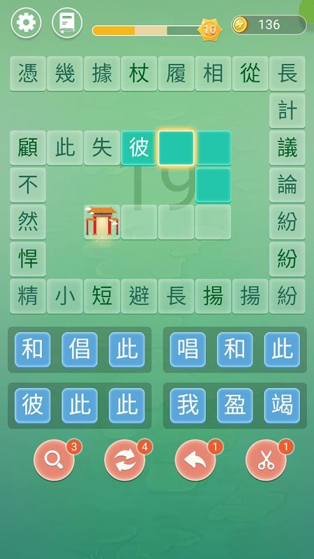 -進度自動保存。一時想不起來某一個成語?不用著急,遊戲將自動保存進度,給你更多思考時間