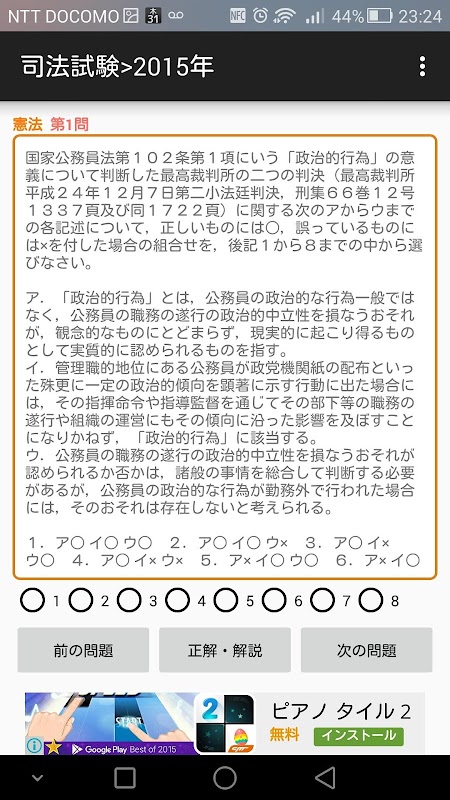 App werd opgenomen juist het verleden vragen van het probleem van de korte-antwoord-typekeuring van gerechtelijke testen oriënterende proef (alternatieve test). Commentaar kan ook worden gekocht in-app-facturering. In mijn vuistregel, een alternatief van het gerechtelijk onderzoek, in plaats van de praktijk in het been door de formule, het oplossen van het verleden vragen in de vorm dicht bij de productie is denk ik de beste. Daarom is in de onderhavige aanvraag, we proberen te reproduceren het verleden vragen van alternatieve is in principe 5 Expert vallen zo getrouw mogelijk (voor het gemak van het programma, een op een "correct de pick-two" en "correct, voor alternatieve probleem van een speciale vorm, zoals het aanbrengen van een 2 "naar wat er mis is, Ja om de 5-optie tot 8 keuzes te bewerken).