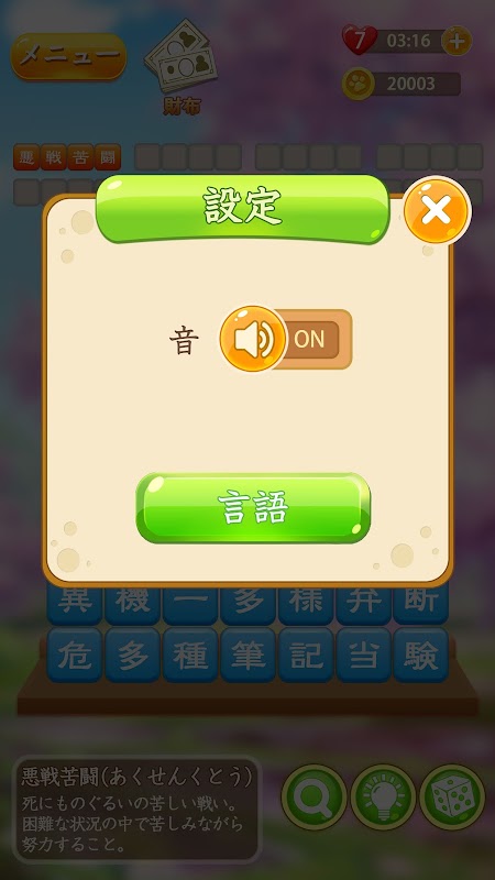 -Als je de idiomen niet kunt wissen tijdens het spel, gebruik dan de willekeurige functie om de resterende kanji willekeurig te sorteren.