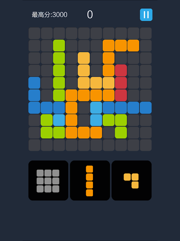 2. Handmatig plaats de invulling van het bord, zolang de laterale of verticale geheel kan worden gevuld, kunnen worden geëlimineerd of achter elkaar, een aantal rijen en kolommen oorzaken elimineren cool effect beslag, het beslag meer, Hoe hoger de score verdubbelen!