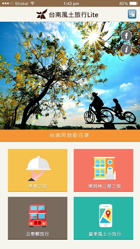 旅行台南Lite版,提供美食之旅、公車輕旅行、當季風土小旅行等推薦行程,讓遊客能更輕鬆掌握在地旅遊路線。