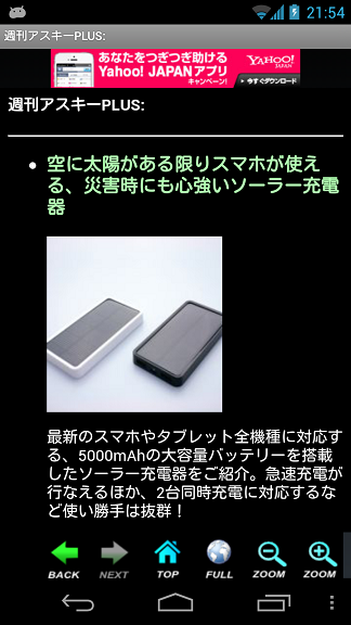このアプリはAndroid端末用にホームページを読み込んで表示・閲覧している性格上、