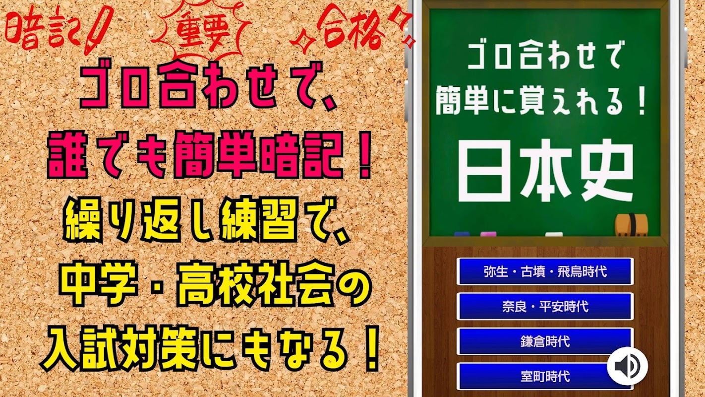 日本史勉強ゴロ合わせで簡単暗記!中学・高校社会入試対策アプリ APK -informatie