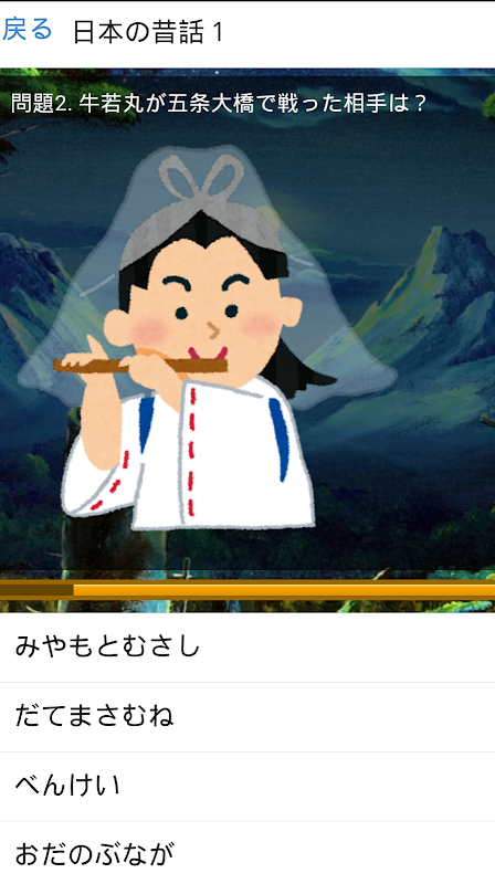 昔から伝わる日本むかし話。桃太郎、浦島太郎、かぐや姫、はなさかじいさんなどのクイズだよ。絵の表示のためにはwifiがつながっている環境が必要です.