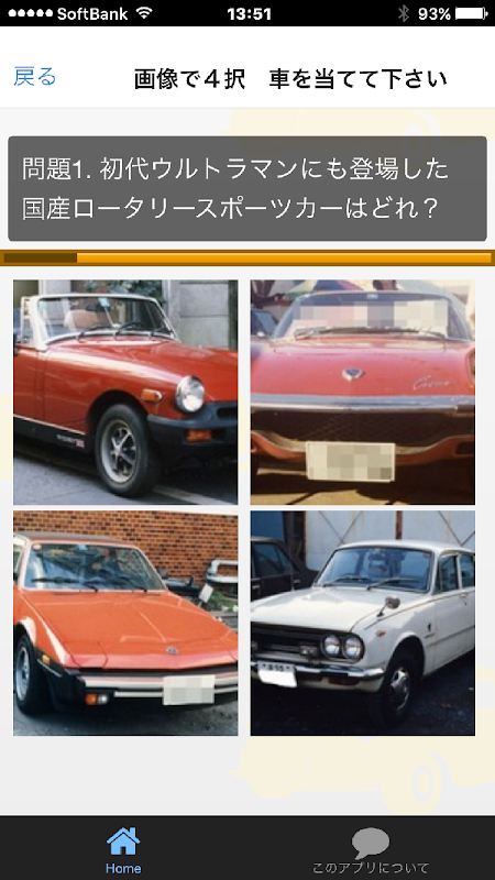 このアプリではクイズ形式で旧車と呼ばれる古い車の事を知る事が出来ます。