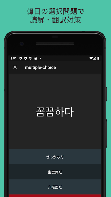 このアプリは韓国語の「単語力」と「リスニング力」を鍛えるためのものです。暗記学習・選択問題・リスニング問題を通じて4300単語を学ぶことが可能です。