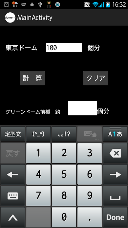 面積の比較で使われる単位「東京ドーム何個分」を群馬県民仕様の「グリーンドーム前橋」に変換するアプリです。