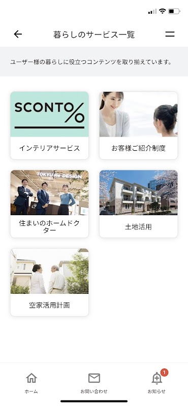 Dit is een app die klanten van Tokyu Re・Design begeleidt naar diensten die wonen en leven ondersteunen.