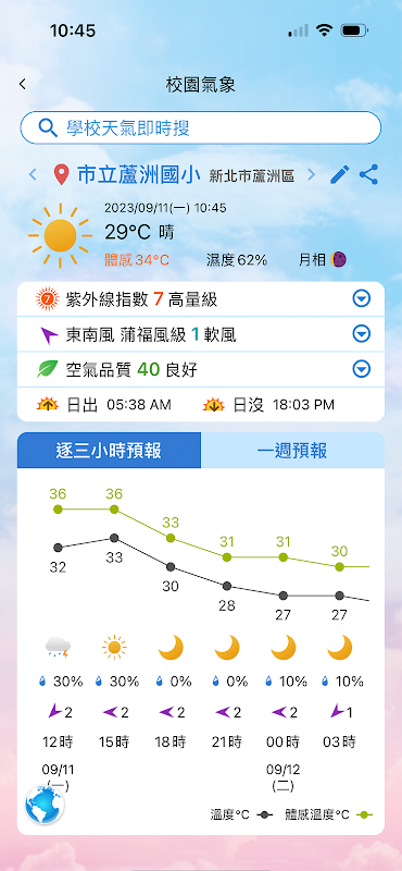 [Campusweerservice] Maakt u zich als ouder altijd zorgen dat uw kinderen warme kleding dragen op school? Kom jij in de regen terecht als je na de les geen paraplu meeneemt? De Lohas Weather APP verzamelt weersinformatie van meer dan 5.000 scholen in Taiwan. Of het nu gaat om temperatuur, regenval, luchtkwaliteit, ultraviolette waarschuwingslichten of toekomstige weertrends, de app geeft ook speciale waarschuwingen voor aardbevingen en zware regenval. Promoot actief het weer informatie waar alle ouders, docenten en leerlingen om geven, zodat zorgen geruststellend kunnen worden, allemaal in het LOHAS-weer.