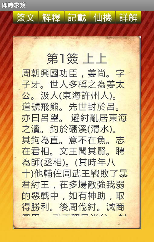 Deze software is "authentieke Hong Kong Wong Tai Sin", aldus Wong Tai Sin Ling ondertekend ondertekende biedt waarzeggerij, controleer oplossing voor de tekst en de administratie te ondertekenen. Met behulp van deze software kan de gebruiker meer informatie over Sin Lingling teken mysterie, ook nadat de persoon te bidden Wong Tai, Charles oplossing voor de tekst zelf te ondertekenen. Wong Tai Sin Temple, Wong Tai Sin Temple Akamatsu volledige naam of oker Yuen Wong Tai Sin Tempel is een beroemde tempel in Hong Kong, zullen veel mensen hier komen, om te bidden voor de zegen.