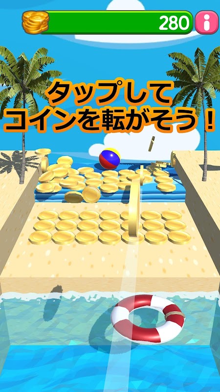 "Nagisa no Coin Otoshi" is een eenvoudig te bedienen muntdozerspel dat je met slechts een tik kunt spelen.