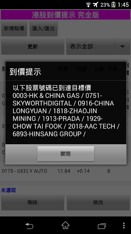 這是適合輕鬆型投資者的股票到價提示工具. 市面上操作最簡易的介面. 不會在背景持續更新資料. 不會持續消耗裝置的電量與數據用量.(長效模式下除外)